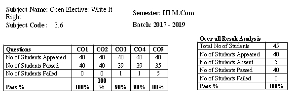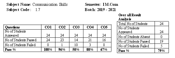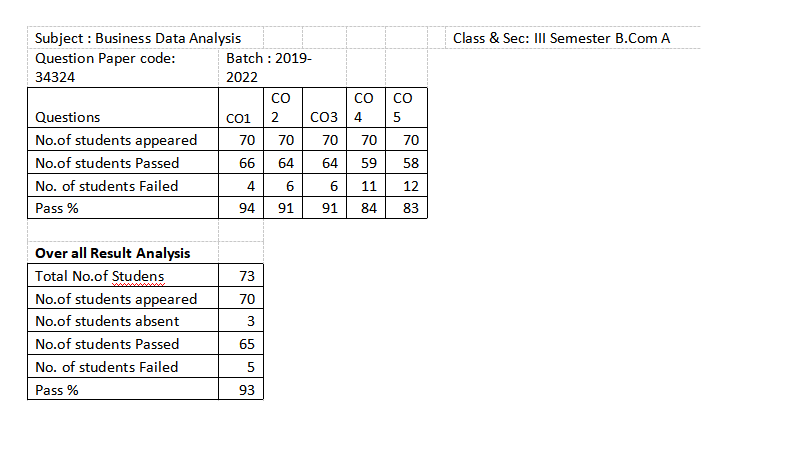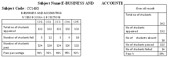 | Course Outcome | 1)‘ಸಂಕ್ಷೇಪ ಲೇಖನ’ ಈ ಭಾಗದಲ್ಲಿ ಅದರಲ್ಲೂ ಮುಖ್ಯವಾಗಿ ವರದಿ, ಪತ್ರವ್ಯವಹಾರ, ದಾಖಲು ಪತ್ರ, ಗ್ರಂಥಗಳು ಇವನ್ನೆಲ್ಲ ಮೂಲದ ಅರ್ಥಕ್ಕೆ ಚ್ಯುತಿ ಬಾರದಂತೆ ಸಂಕ್ಷಿಪ್ತಗೊಳಿಸುವುದು. ಸಂಕ್ಷಿಪ್ತಗೊಳಿಸುವ ಸಂದರ್ಭದಲ್ಲಿ ಅನುಸರಿಸ ಬೇಕಾದ ಕ್ರಮಗಳನ್ನು ವಿದ್ಯಾರ್ಥಿಗಳು ತಿಳಿದಿದ್ದಾರೆ. ಎಚ್ಚೆಸ್ಕೆ ಯವರ 2)’ಕಂಪನಿಯ ಕಾರ್ಯದರ್ಶಿ’ ಈ ಭಾಗದಲ್ಲಿ ಕಂಪನಿ ಕಾರ್ಯದರ್ಶಿಯ ಜವಬ್ದಾರಿಗಳು, ಅವರು ನಡೆಸುವ ವಿವಿಧ ರೀತಿಯ ಪತ್ರ ವ್ಯವಹಾರಗಳು ಅದರಲ್ಲಿ ನಿರ್ದೇಶಕರೊಡನೆ, ಷೇರುದಾರರೊಡನೆ, ಸಾರ್ವಜನಿಕರೊಡನೆ, ಸಿಬ್ಬಂದಿಯೊಡನೆ ಹಾಗೂ ಇತರ ಸಿಬ್ಬಂದಿಯೊಂದಿಗೆ ಅವರು ನಡೆಸುವ ಪತ್ರ ವ್ಯವಹಾರ ಹಾಗೂ ಮಾದರಿ ಪತ್ರಗಳನ್ನು ಅರಿತಿದ್ದಾರೆ. ಡಾ. ವೀರೇಶ ಬಡಿಗೇರಿ ಯವರ 3)’ಕನ್ನಡದಲ್ಲಿ ಕಂಪ್ಯೂಟರ್ ಬಳಕೆ’ ಈ ಲೇಖನ ವಿವಿಧ ಕ್ಷೇತ್ರಗಳಲ್ಲಿ ಕಂಪ್ಯೂಟರ್ ಬಳಕೆಯಾಗುತ್ತಿರುವ ರೀತಿ. ತಂತ್ರಾಂಶವನ್ನು ಬಳಸಿ ವಾಕ್ ಸಂಶ್ಲೇಷಣೆಗೊಳಿಸುವ ಬಗೆ, ಓ.ಸಿ.ಆರ್ ಸೌಲಭ್ಯ, ಕನ್ನಡ ಮತ್ತು ಮಾಹಿತಿ ತಂತ್ರಜ್ಞಾನ, ಎಲಕ್ಟ್ರಾನಿಕ್ ಬುಕ್, ಇ-ವ್ಯವಹಾರ, ವಿ- ಅಂಚೆ, ಕನ್ನುಡಿ ವೆಬ್ ಸೈಟ್ (ಅಂತರ್ಜಾಲ) ಹಾಗೂ ಕನ್ನಡ ಮತ್ತು ಬಹು ಮಾಧ್ಯಮ ಈ ಎಲ್ಲಾ ಅಂಶಗಳನ್ನು ವಿದ್ಯಾರ್ಥಿಗಳು ಈ ಭಾಗದಲ್ಲಿ ಅರಿತಿದ್ದಾರೆ. |
