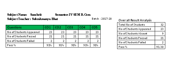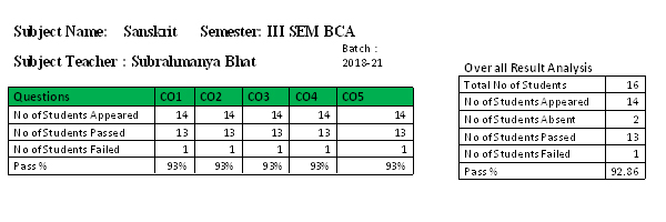 | 15 | Mr. Subramanya Bhat | HOD ,Sanskrit |