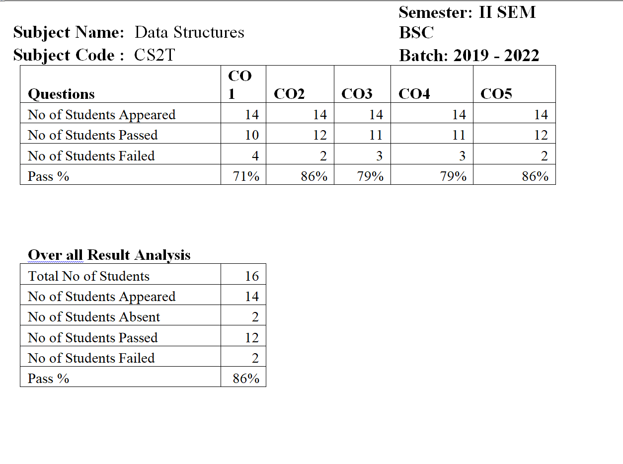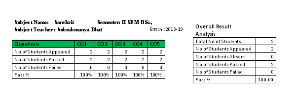 | Course Outcome | ಟಿ.ಪಿ ಕೈಲಾಸಂ ರವರ 1)‘ಟೊಳ್ಳುಗಟ್ಟಿ’ ನಾಟಕದಲ್ಲಿ ವಿದ್ಯೆ ಎಂಬುದು ಪರೀಕ್ಷೆಯ ಹೆಸರಿನಲ್ಲಿ ದಿನಗಟ್ಟಲೆ ಓದು, ಗಂಟೆ ಗಟ್ಟಲೆ ಪರೀಕ್ಷೆ ಬರೆದು ಒಳ್ಳೆ ಅಂಕ ಪಡೆದವನು ಬುದ್ಧಿವಂತ ಎಂಬುದನ್ನು ಬಿಟ್ಟು ವಿದ್ಯಾರ್ಥಿಗಳಲ್ಲಿರುವ ಸುಪ್ತ ಪ್ರತಿಭೆಯನ್ನು ಹೊರತೆಗೆದು ಹೊಸ ಪದ್ಧತಿ ಹಾಗೂ ಹೊಸ ಆಲೋಚನೆಗಳತ್ತ ಮಕ್ಕಳ ಮನಸನ್ನು ರೂಪಿಸ ಬೇಕು. ಈ ನಾಟಕದಲ್ಲಿ ಬರುವ ಓದಿನಲ್ಲಿ ಹಿಂದಿರುವ ಮಾದು, ಆತನ ಸಹೃದಯ ವ್ಯಕ್ತಿತ್ವವನ್ನು, ಆತನ ಸಾಮಾಜಿಕ ಕಳಕಳಿಯನ್ನು ವಿವರಿಸಿದ್ದಾರೆ.ಈ ಅಂಶವನ್ನು ವಿದ್ಯಾರ್ಥಿಗಳು ಅರಿತಿದ್ದಾರೆ. |