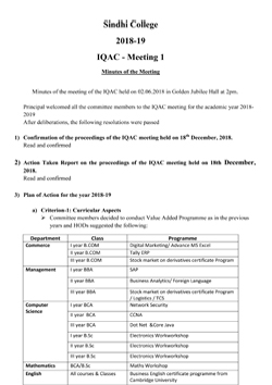 In pursuance of the National Action Plan of the National Assessment and Accreditation Council (NAAC), Bangalore, for performance evaluation, assessment and accreditation and quality up gradation of institutions of higher education, the NAAC proposes that every accredited institution should establish an Internal Quality Assurance Cell (IQAC) as a post-accreditation quality sustenance measure. Since quality enhancement is a continuous process, the IQAC will become a part of an institution’s system and work towards realizing the goals of quality enhancement and sustenance. The prime task of the IQAC is to develop a system for conscious, consistent and catalytic improvement in the performance of institutions. The IQAC will make a significant and meaningful contribution in the post-accreditation phase of institutions. During the post-accreditation period, the IQAC will channelise the efforts and measures of an institution towards academic excellence.