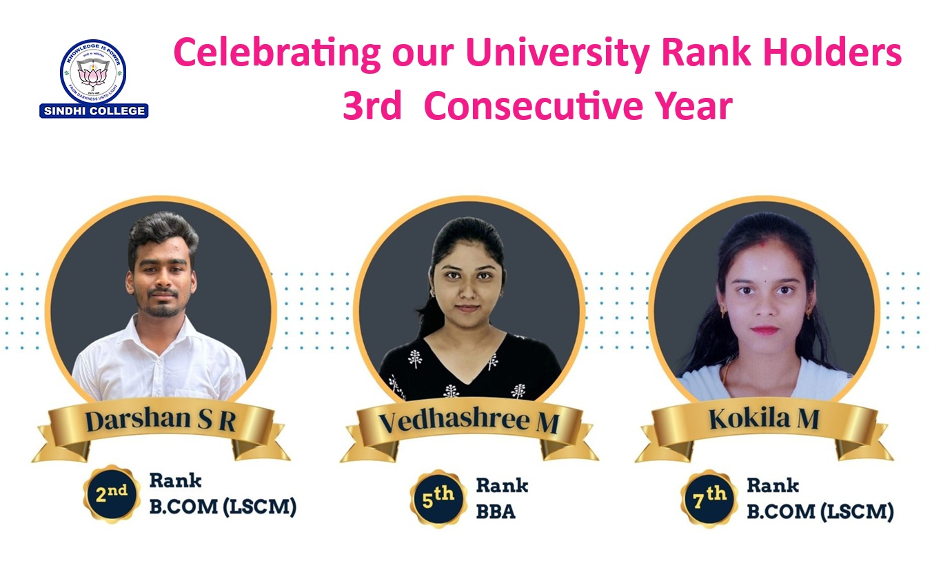 Sindhi College, Bengaluru was established in the year 2002, under the aegis of Sindhi Seva Samiti, a philanthropic organisation managed by the Sindhis with, "Service to Human kind" as their motto and was inaugurated by Sri L.K.ADVANI the then Deputy Prime Minister of India and Sri S.M.Krishna the then Chief Minister of Karnataka.